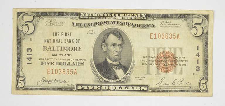 Nice example of the $5 legal tender with the woodchopper and his family as the center vignette.  A classic design.  note is circulated