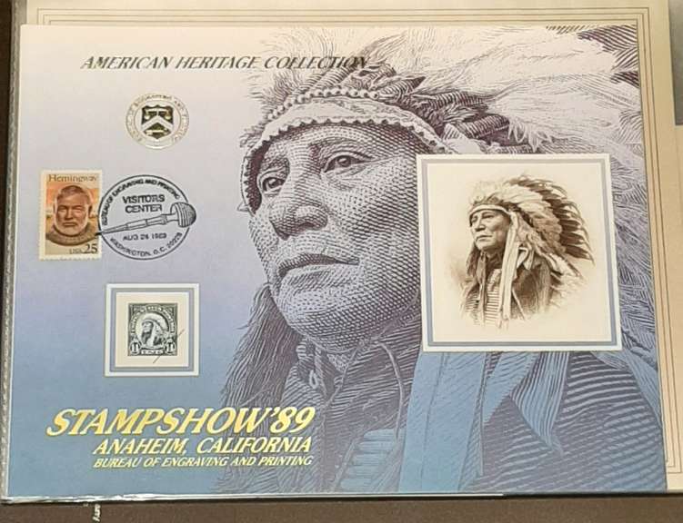 20 Plus Mainly US Numismatic Issue Souvenier Cards/Sheet  Philatelic / numismatic events etc Many really valuable examples of US Large size paper money 1970 - 90 issues. Many from BEP B 41, B42 B 45, B 53 -57, B 59, B 69, B 71 B 73, B77 B 79, B 81-2, B 84 , B 88 B 93, B 87 All with no stamps. then  B 94, B 97 -B 99 All in good condition Part of someones lifetime collection