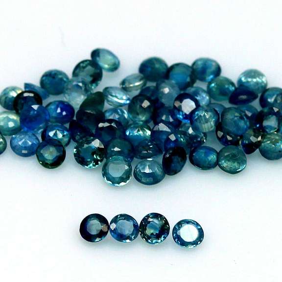 This 79 piece set features rich color saturation with multiple shades of blue and translucent bodies. They have amazing liquid lusters giving them the appearance of being wet, and measure around 2.7mm x 1.6mm each. Sourced from Madagascar. These pieces are heated only with no dyes or fillers, and have a Mohs hardness rating of 9 out of 10.