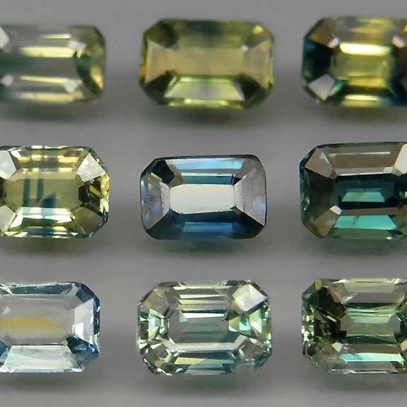 This glittering selection of sapphires presents a gorgeous mix of blues, yellows, and greens with both rich and vivid color saturation. The colors of these gems swirl and mix together, giving them their uniquely Australian color palettes. They are well matched in size, measuring between 4.5x3mm and 5x3mm each with a Mohs hardness rating of 9 out of 10. Unheated!