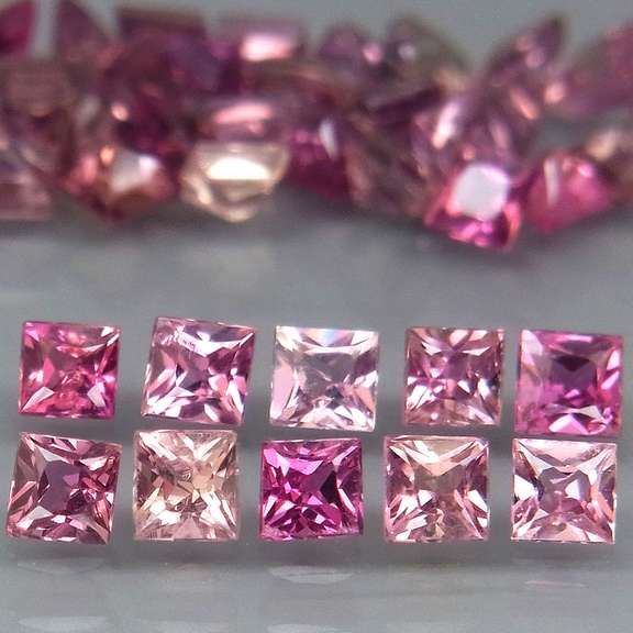 With their rich colors, outstanding clarity and superb faceting, these 40 sapphires are simply stunning. They exhibit a strong mix of gorgeous reds, pinks and violets which is a rare color combination for sapphires, and measure 2.3mm each. These gems have tightly faceted radiant princess cuts with pristine VS to eye clarity and superior lusters that twinkle while their cuts sparkle. Sourced from Songea, Africa. Unheated!