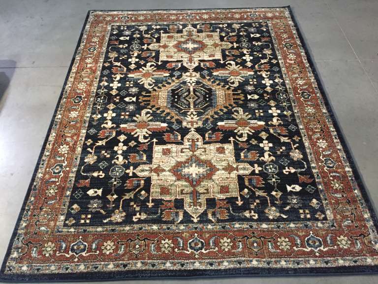 CLASSIC MEDALLION PERSIAN HERIZ DESIGN RUG , IN NAVY BLUE, RUST AND MULTI ACCENT COLORS POWER LOOM IN TURKEY 100% STAIN RESISTANT POLYPROPYLENE PILE